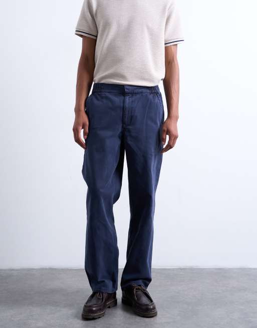 Pantalones azul marino de pernera recta con cintura elástica de sarga de Topman
