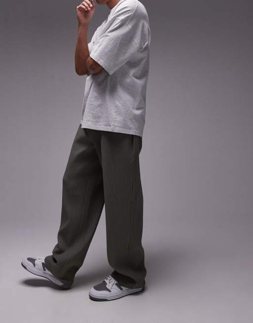 Pantalones caquis plisados de pernera ancha de Topman