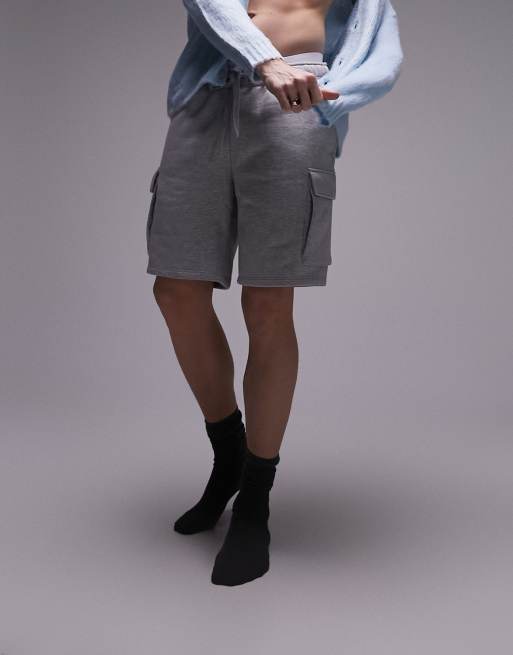 Pantalones cortos cargo gris jaspeado de punto liso de Topman
