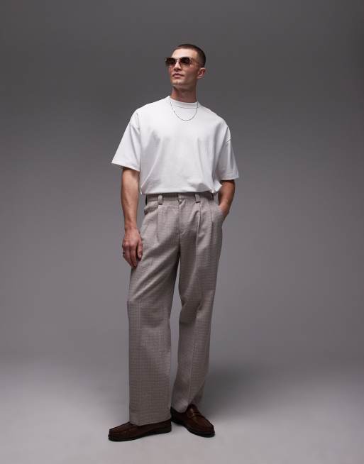 Pantalones de traje color piedra de pernera ancha de tejido texturizado de Topman