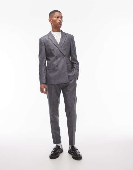 Pantalones de traje grises de corte tapered con patrón de hilos cruzados crosshatch de Topman
