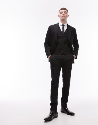 Pantalones de traje negros de corte superpitillo con acabado texturizado de Topman