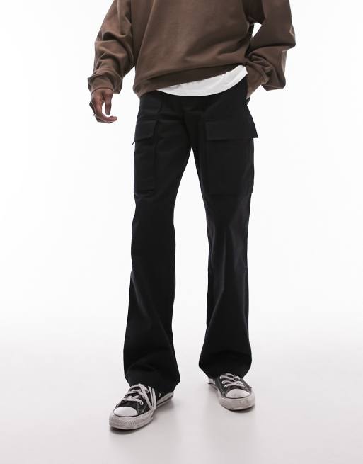 Pantalones de vestir cargo negros de pernera ancha de estilo worker de Topman