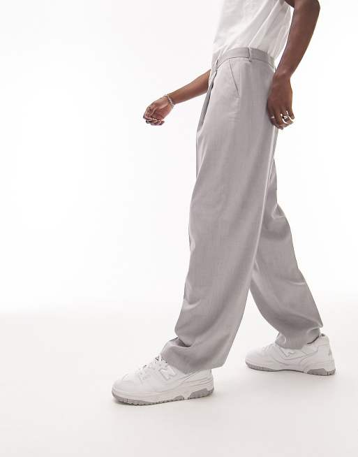 Pantalones de vestir grises plisados de pernera ancha de Topman