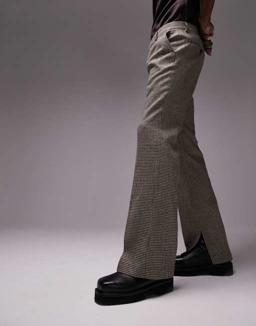 Pantalones marrones de corte recto acampanado con acabado texturizado de Topman