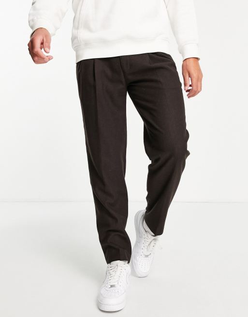 Pantalones marrones holgados abrigados con doble pinza de Topman