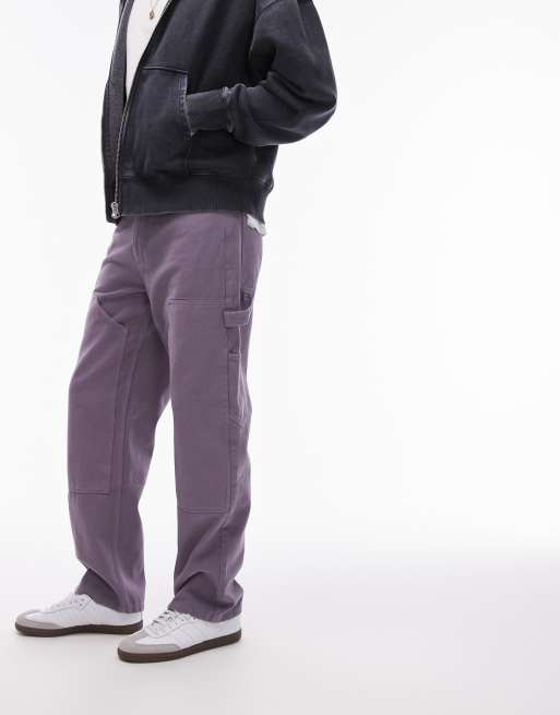 Pantalones morados de corte recto y estilo carpintero de Topman