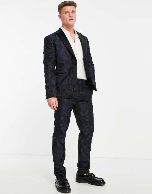 Pantalones negros de corte slim con estampado marmolado de Topman