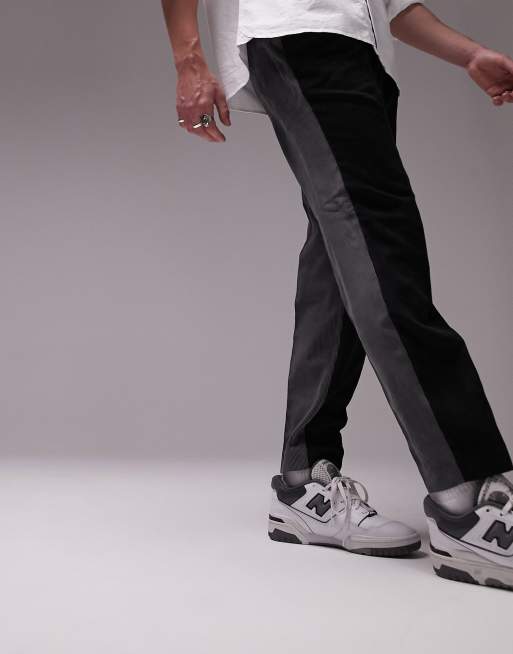 Pantalones negros y gris carbón de corte tapered con diseño dividido de pana de Topman