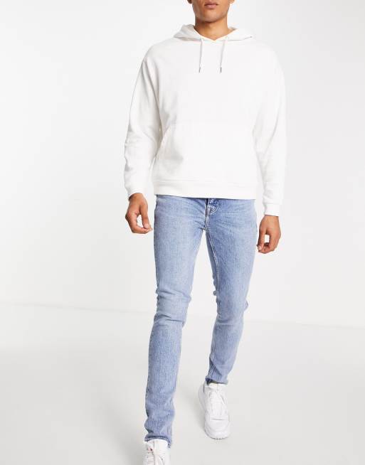 Pantalones pitillo con lavado claro de mezcla de algodón de Topman - LBLUE
