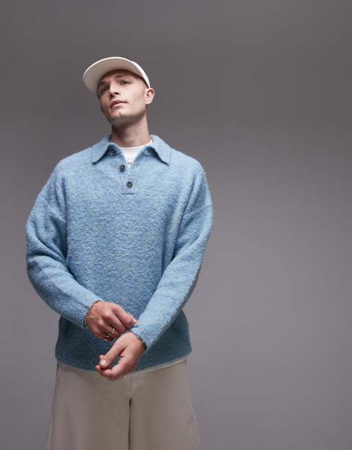 Polo azul jaspeado extragrande de bouclé de Topman