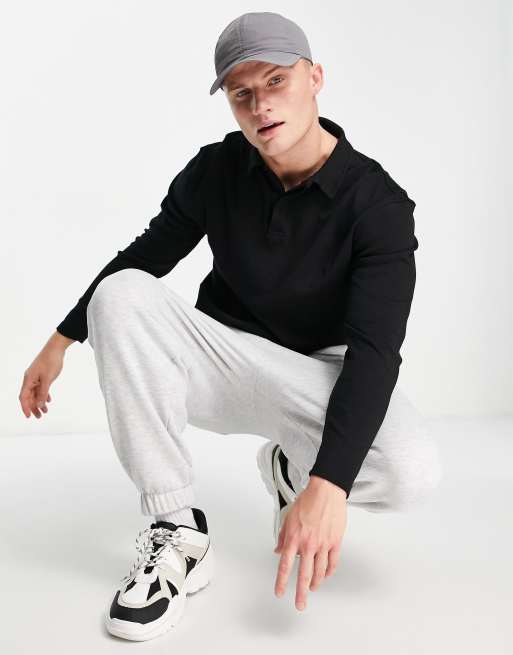 Polo negro de manga larga de punto de Topman