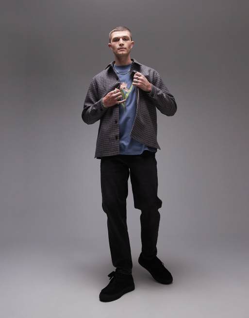 Sobrecamisa marrón a cuadros de manga larga de Topman