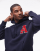 Sudadera azul marino extragrande con capucha y bordado de letra de chenilla de Topman