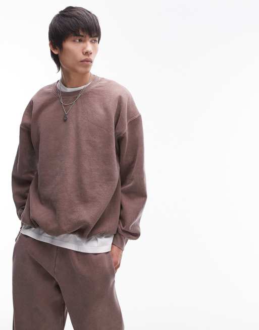 Sudadera color visón extragrande con lavado envejecido de Topman