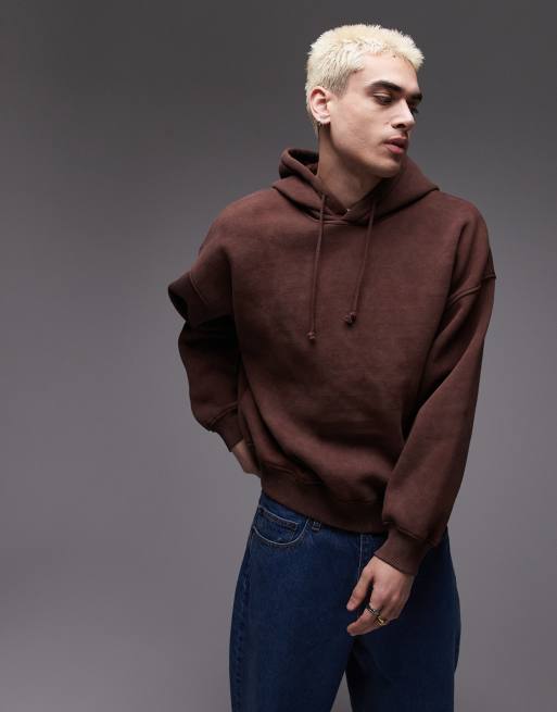 Sudadera marrón lavado extragrande con capucha de Topman