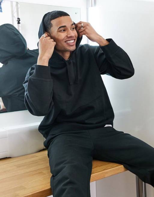 Sudadera negra extragrande con capucha de Topman (parte de un conjunto)
