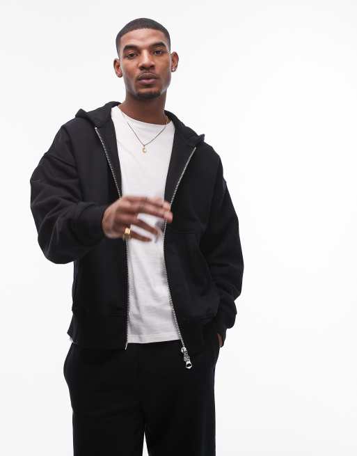 Sudadera negra extragrande con capucha y cremallera de tejido grueso premium de Topman