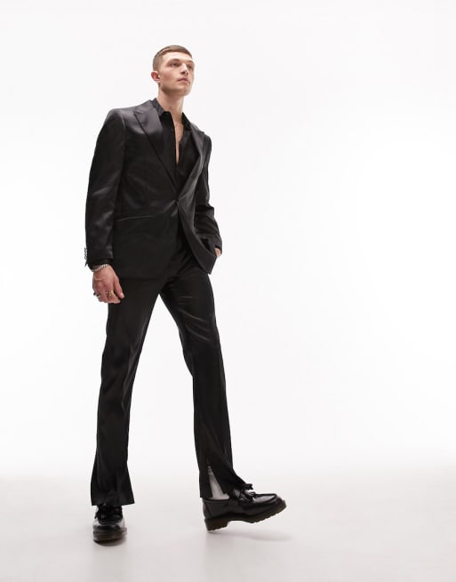 Traje negro ultrabrillante de Topman