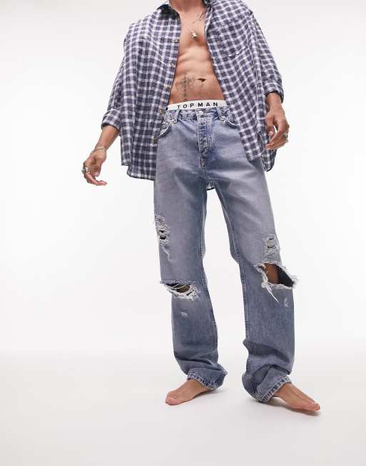 Vaqueros rasgados con lavado medio de corte recto Stacker de Topman