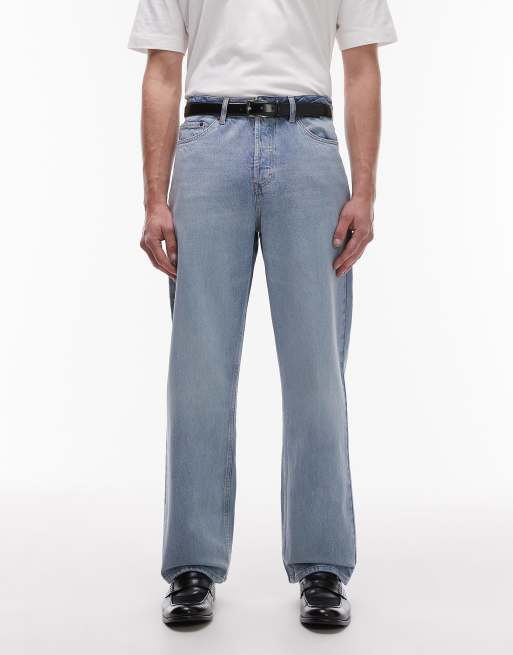 Vaqueros rígidos holgados con lavado azul claro de Topman