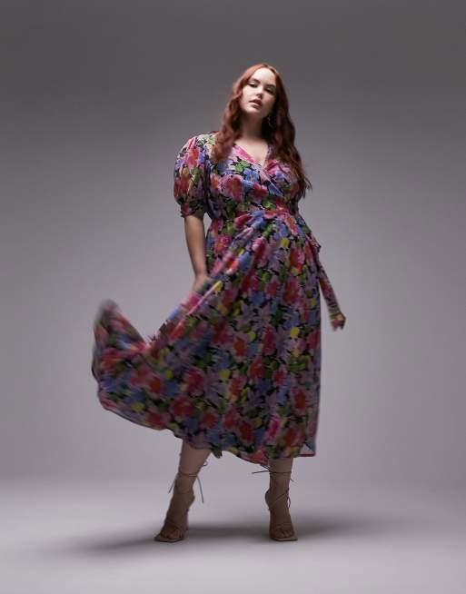 Vestido midi cruzado con estampado floral difuminado de Topshop Curve