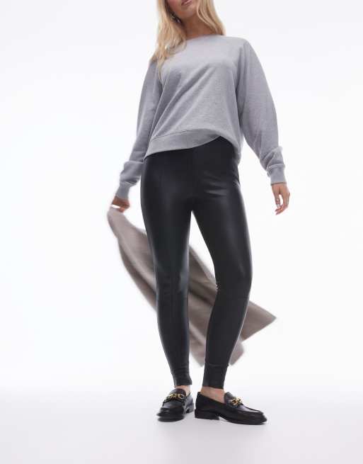 Pantalones negros de corte pitillo de cuero sintético de Topshop Hourglass