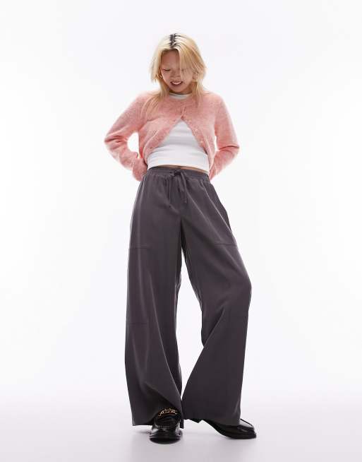 Pantalones gris carbón de pernera ancha sin cierre de Topshop Petite