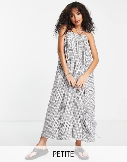 Vestido largo de playa a cuadros monocromáticos con diseño fruncido de Topshop Petite