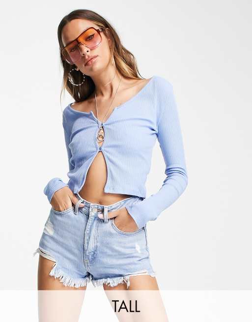 Top azul pálido de manga larga con botones y muesca en la parte delantera de Topshop Tall