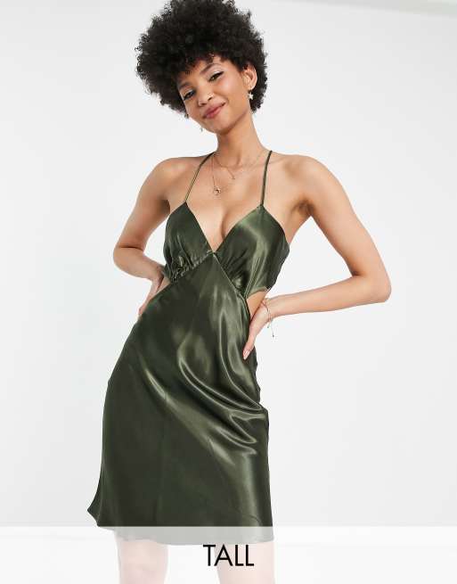 Vestido corto cerceta con cuello halter y aberturas de satén de Topshop Tall