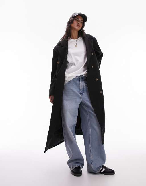Abrigo de vestir largo negro extragrande de Topshop