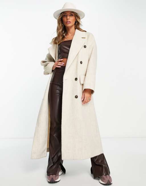 Abrigo largo beis extragrande con doble botonadura de Topshop
