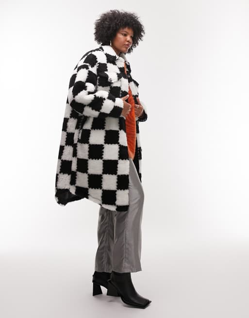 Abrigo monocromático a cuadros dameros de borreguito de Topshop Curve