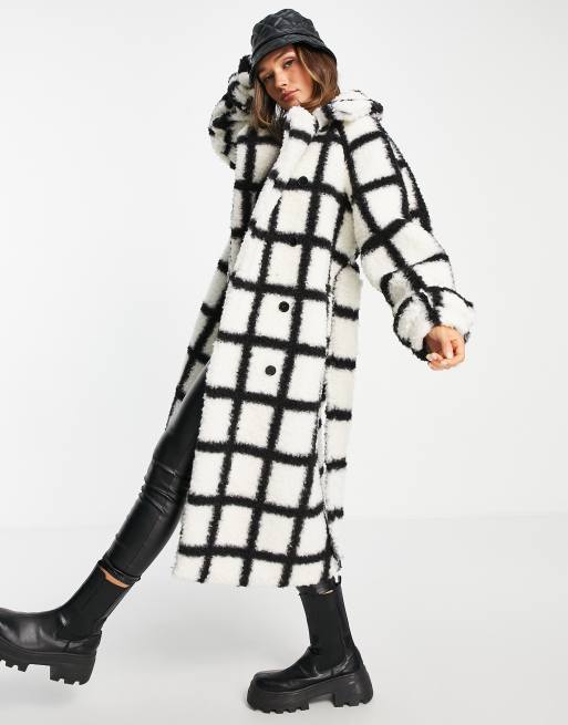 Abrigo monocromático a cuadros de borreguito de Topshop