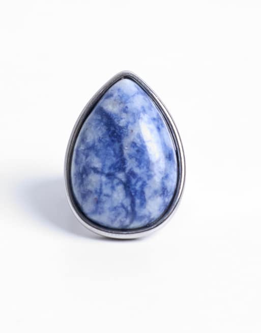 Anillo plateado con piedra semipreciosa azul de acero inoxidable Remi de Topshop