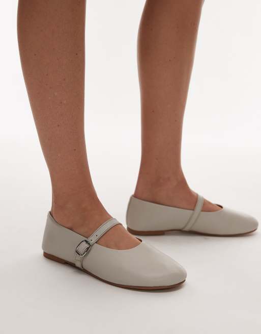 Bailarinas blanco hueso planas y fruncidas con hebilla de cuero auténtico Ash de Topshop