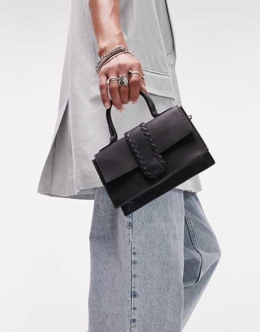 Bandolera pequeña negra con detalle entretejido de cuero Lola de Topshop