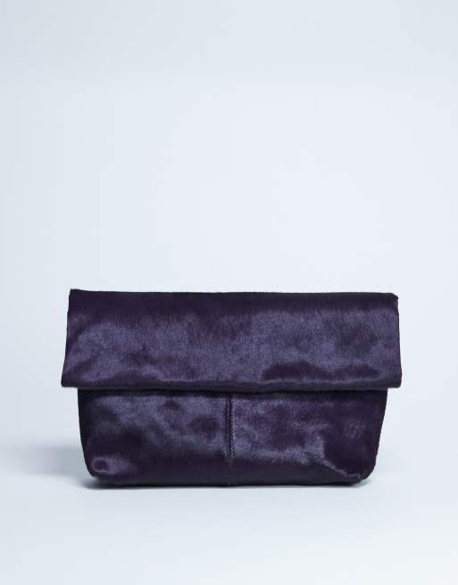 Bolso clutch morado con diseño plegado de cuero acabado efecto potro Georgia de Topshop