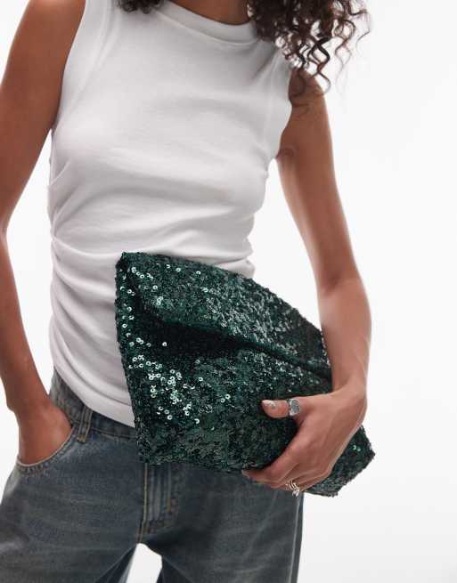 Bolso clutch verde con diseño plegado de lentejuelas Georgia de Topshop