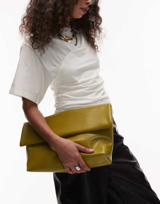 Bolso clutch verde con diseño plegado Georgia de Topshop