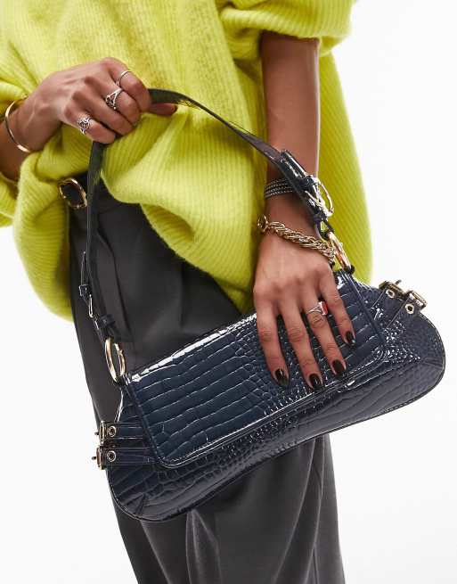 Bolso de hombro azul con hebillas Sienna de Topshop