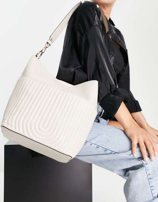 Bolso de hombro blanco hueso holgado con bolsillo acolchado Hattie de Topshop