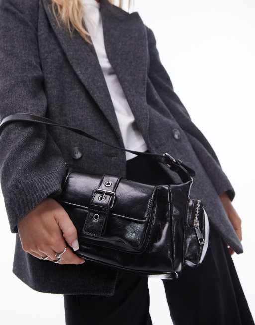 Bolso de hombro negro con bolsillo Saskia de Topshop