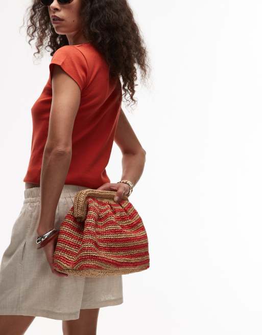 Bolso de mano naranja a rayas de croché Galileo de Topshop