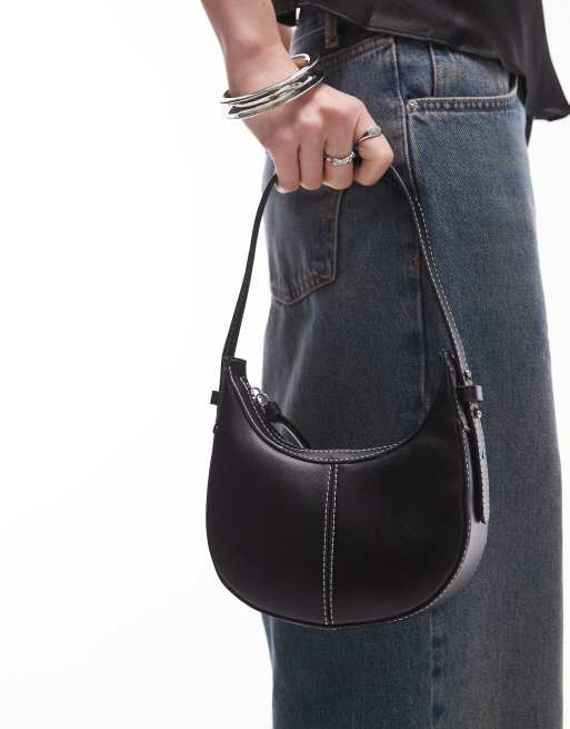 Bolso de mano pequeño negro redondeado con pespuntes en contraste Gracie de Topshop