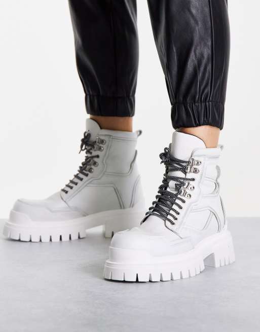 Botas blancas con cordones y suela gruesa de cuero Alex de Topshop