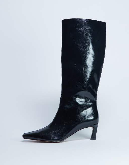 Botas por la rodilla negras con puntera fina Tanya de Topshop