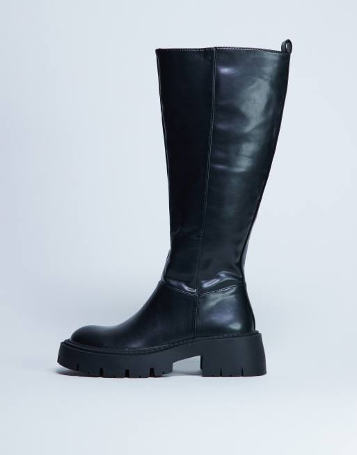 Botas por la rodilla negras con suela gruesa Riya de Topshop