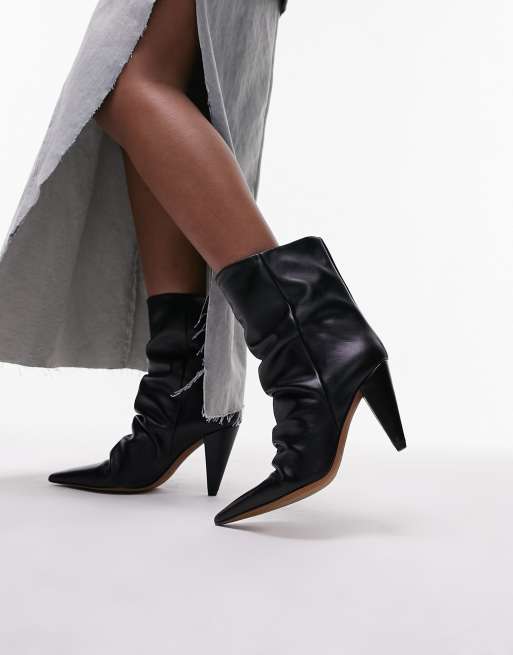 Botines negros de tacón cónico con puntera fina de cuero auténtico Nadia de Topshop Wide Fit